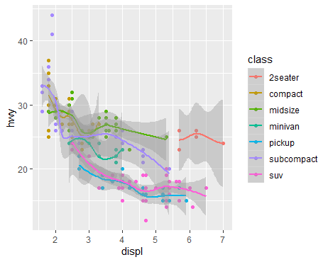 geom_smooth() | stat_smooth() | x |